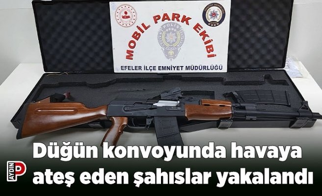 Aydın’da düğün konvoyu esnasında tüfeklerle havaya ateş eden şahıslar polis ekipleri tarafından yakalandı.