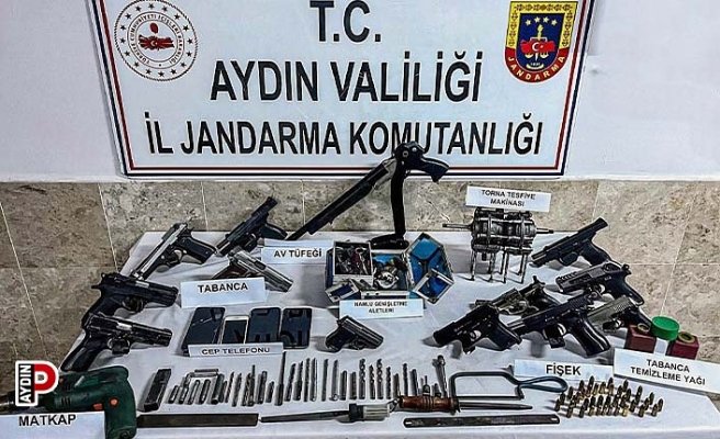 Aydın İl Jandarma Komutanlığı, Kaçakçılık ve Organize Şube Müdürlüğü ekiplerimizce silah kaçakçılığı (silah imalatı ve satışı) yapan şahsa yönelik çalışma başlattı. Prof. Muammer Aksoy Mahallesi’nde planlı takip yapılan bir şüpheli şahsa ait ev ve eklentilerinde arama yapıldı. Yapılan aramalarda 1 adet elektronik torna tesviye (Namlu açma) Makinası, 11 adet (Namlusu açık) kurusıkıdan bozma 9mm. Tabanca, 1 adet (Namlusu açık) 7,65 mm tabanca fişeği, 45 adet tabanca fişeği, 1 adet av tüfeği, 10 adet ağzı açılmış namlu, 25 adet ateşleme iğnesi, 10 adet icra yayı ve mili, 1 adet matkap, 20 adet matkap ucu, 20 adet el aleti (Tornavida, Pense vb.), 15 adet şarjör, 5 adet tabanca üst kapağı, 5 adet cep telefonu, 3 adet tabanca temizleme yağları ele geçirildi. Şüpheli şahıs yakalanarak gözaltına alınırken, sevk edildiği adli makamlarca tutuklandı.