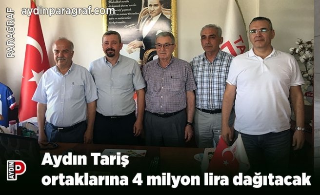 S.S. 46 Nolu Aydın TARİŞ Pamuk ve Yağlı Tohumlar Tarım Satış Kooperatifi yönetimi 23 yıl aradan sonra ortaklarına çifte bayram yaşattı. Aydın TARİŞ Pamuk ve Yağlı Tohumlar Tarım Satış Kooperatifi Başkanı Tolga Önal, 838 ortakları bulunduğunu ve 2023 yılında ortak içi teslimat yapan 482 üreticiye fiyat farkı dağıtmaya yarın itibariyle başlayacaklarını söyledi.