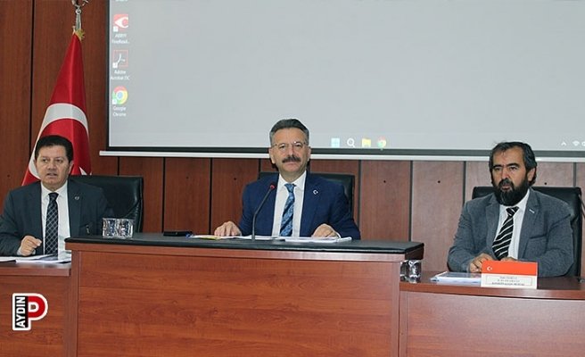 Yatırım İzleme ve Koordinasyon Başkanlığı Toplantı Salonu’nda Aydın Valisi Hüseyin Aksoy başkanlığında yapılan toplantıya Aydın Büyükşehir Belediye Başkan Vekili Barış Altıntaş, kaymakamlar, ilçe belediye başkanları, daire müdürleri ve meslek kuruluşu temsilcileri katıldı.