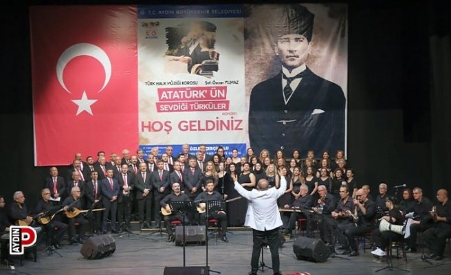 Aydın Büyükşehir Belediyesi Türk Halk Müziği Korosu ve koro üyeleri tarafından seslendirilen Atatürk’ün sevdiği türküler, izleyicilerden büyük beğeni aldı. Şef Özcan Yılmaz yönetimindeki Büyükşehir Belediyesi Türk Sanat Müziği Korosu ile seyirciler şarkılara birlikte eşlik etti. Gazi’nin sevdiği eserlerin seslendirildiği konser, ‘Sarı Saçlım Mavi Gözlüm’ ve ‘İzmir Marşı’ ile son buldu.