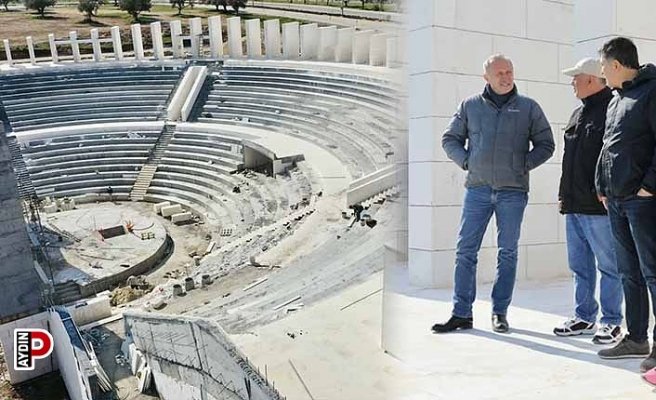 Didim Belediye Başkanı Ahmet Deniz Atabay, Didim Amfitiyatro’yu ziyaret ederek sürdürülen çalışmaları yerinde inceledi. Yetkililerden faaliyetler hakkında bilgi alan Başkan Atabay, “Kültür sanat faaliyetlerinin yeni merkezi haline gelecek olan amfitiyatroda çalışmalar hız kesmeden sürüyor. Didim’e kazandıracağımız bu Amfitiyatro ile kentimizi bir adım daha ileriye taşıyacağımızdan eminiz. Önümüzdeki turizm sezonunda on binlerce yerli ve yabancı turisti ağırlayacak olan merkezimizde yüzlerce konser verilecek, birçok kültür-sanat faaliyeti vatandaşlarımız ile buluşacak. Ekiplerimiz burada çalışmalarını hummalı bir şekilde sürdürüyor, kendilerine teşekkür ediyorum. Bizler Didim için çalışmaya, kentimiz için hizmet vermeye devam edeceğiz” dedi.