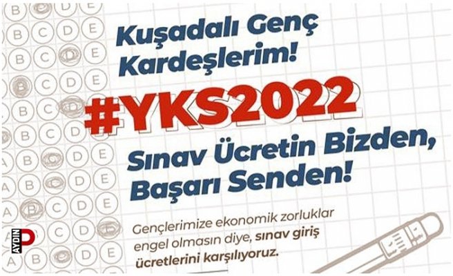 Kuşadası Belediye Başkanı Ömer Günel, eğitimin önündeki engelleri kaldırmak için çalıştıklarına dikkat çekerek “Kuşadalı Genç Kardeşlerim, YKS 2022 sınav ücretlerinizi biz karşılıyoruz. Geleceğimizin teminatı siz gençlere ekonomik zorluklar engel olmasın diye, eğitime destek bizden, başarı sizden” dedi.