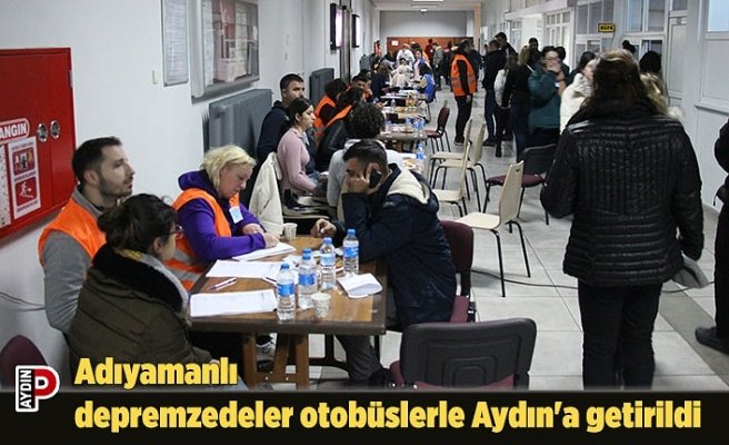 Yaşanan depremlerin ardından Adıyamanlı depremzedeleri Aydın’da misafir etmek için çalışma başlatıldı. Aydın Valiliği tarafından yapılan duyuru çerçevesinde, depremzede vatandaşların Aydın’da çeşitli yurtlarda ve kamu kurumlarının misafirhanelerinde misafir edileceği açıklandı. Yapılan koordinasyonun ardından Adıyaman’dan yola çıkan yaklaşık 120 kişilik ilk kafile Aydın’a geldi. Aydın’ın merkez ilçesi Efeler’de bulunan Atatürk Spor Salonu’nda kayıtları yapılan depremzedeler daha sonra Nazilli ilçesindeki Hacı Efendizade Öğrenci Yurdu ve Kuşadası ilçesi Efe Ayşe Öğrenci Yurdu’na yerleşmek üzere ilçeden ayrıldı.