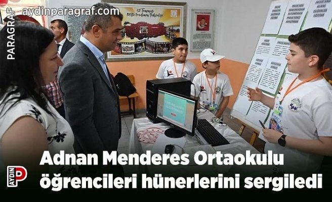 Aydın Adnan Menderes Ortaokulu öğrencileri, İngilizce Öğretmenleri Nur Yurtsever öncülüğünde hazırladıkları projeleri TÜBİTAK 4006 Bilim Fuarı programı çerçevesinde sergiledi. Bilim fuarının açılışını yapan Aydın İl Milli Eğitim Müdürü Süleyman Ekici, tek tek incelediği projelere tam not vererek başarılarından dolayı öğrenci ve öğretmenlere tebrik etti.