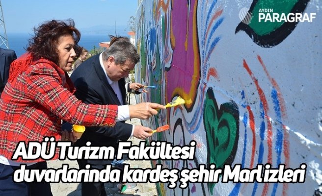 Kuşadası’nın Almanya’daki kardeş şehri Marl’dan 43. Turizm Haftası nedeni ile Kuşadası’na gelen 6 genç Adnan Menderes Üniversitesi Turizm Fakültesi’nde duvar resim çalışması yaptı.