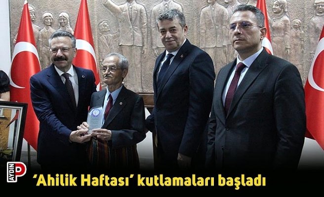 Aydın’da ‘Ahilik Haftası’ kutlamaları çerçevesinde hafta boyunca gerçekleştirilecek olan programlardan ilki Aydın Valiliği önünde gerçekleştirilirken, programda Atatürk büstüne Ticaret İl Müdürlüğü, Aydın Esnaf ve Sanatkarlar Odaları Birliği (AYESOB), Aydın Ticaret Odası Başkanlığı ve Aydın Sanayi Odası Başkanlığı çelenkleri sunuldu. Saygı duruşu ve İstiklal Marşı’nın okunmasının ardından; Ahilik İl Kutlama Komitesi, İlin Ahisi İsmail Gülcan, İlin Kalfası Ali Mehmet Gel, İlin Çırağı Alihan Kaplan ve esnaf odası temsilcileri Aydın Valisi Hüseyin Aksoy’u ziyaret etti.