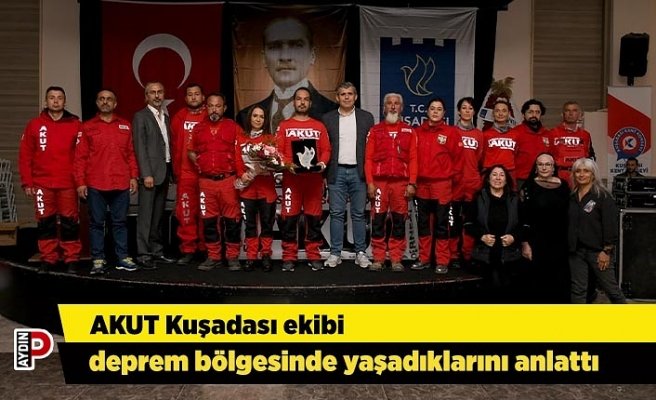 Kahramanmaraş merkezli meydana gelen ve birçok ilde yıkıma neden olan depremlerin ardından afet bölgesine yardıma koşan AKUT Kuşadası ekibi, 26 kişiyi enkaz altından sağ olarak kurtardı. Gece gündüz arama kurtarma çalışması yapan ekip üyeleri, yaşadıklarını Kuşadası Belediyesi ve Kuşadası Kent Konseyi tarafından düzenlenen ‘Kent Kahramanlarıyla Buluşuyor’ isimli panelde anlattı.