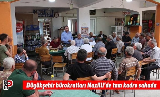 Aydın Büyükşehir Belediyesi bürokratları “Büyükşehir Sahada” uygulaması çerçevesinde bu kez Nazilli’de tam kadro sahaya çıktı. Mahallelere yapılan rutin ziyaretlerde, vatandaşların talepleri dinlendi, mahallelere yapılan yatırımlarla ilgili bilgi verildi.