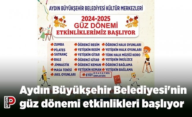 27 Eylül’e kadar kayıt olunabilecek kurslar hakkında detaylı bilgiye ise www.aydin.bel.tr adresinden ulaşmak mümkün.