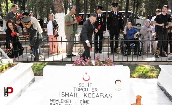 Daha sonra Aydın İl Müftüsü Hasan Güneş tüm şehitler için dua edilirken, Aydın protokolü ile birlikte şehit kabirlerini ziyaret eden Vali Aksoy, şehitlerin kabirlerine karanfil bıraktı.
