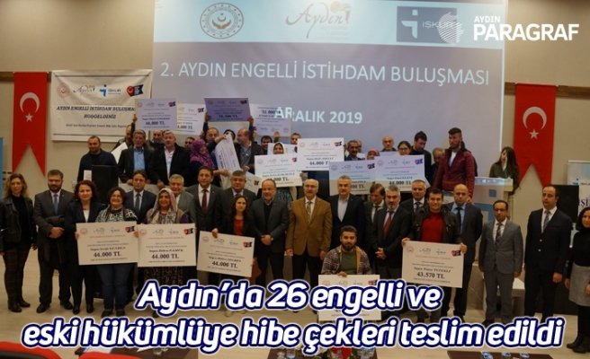 Aydın Valiliği Çalışma ve İş Kurumu İl Müdürlüğü tarafından düzenlenen 2. Aydın Engelli İstihdam Buluşması’nda 26 engelli ve eski hükümlüye hibe çekleri teslim edildi.