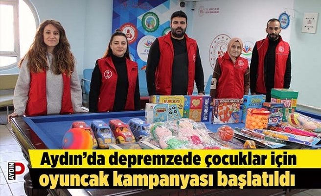 Aydın Gençlik ve Spor İl Müdürlüğü koordinasyonunda çalışmalarına devam eden Aydın Gençlik Merkezi, depremzede çocukların aileleriyle birlikte GSB Yurtlarında konaklamaya başlamasından sonra çeşitli ihtiyaçların karşılaması için programlar yaparken eğitici oyunlar, elişi çalışmaları, akıl ve zeka oyunları, çiçek ve fidan dikimi ve ‘Çaya geliyoruz’ programları hazırlayıp uygulamaya başladı. Bu çerçevede depremzede çocukların yüzünü güldürmek amacıyla harekete geçen Gençlik Merkezi liderleri de oyuncak bağışı kampanyası başlattı. “Oyuncağım oyuncağın olsun” sloganıyla başlatılan kampanya çerçevesinde toplanacak oyuncaklar, deprem bölgelerinden Aydın’a gelen ve yurtlara yerleştirilen depremzede ailelerin çocuklarına hediye edilecek.