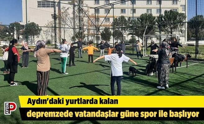 Aydın Gençlik ve Spor İl Müdürlüğü Adnan Menderes Öğrenci Yurdu’ndaki depremzede aileler ve çocuklar fiziksel aktivitelerde bulunarak zinde kalmaları için sabah sporu uygulaması başlattı.