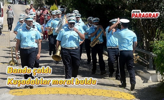 Kuşadası Bayraklıdede ve İkiçeşmelik Mahalle sakinlerine çaldıkları marş ve şarkılar ile moral veren Kuşadası Belediye Bandosu son bir ay içinde 40 kez performans yaparak Kuşadalıların gönlünü feth etti. Kuşadası’nda gitmedikleri mahalle ve sokak kalmayan Kuşadası Bandosu’nun 1 Mayıs’da son durağı, bandonun kurucularından İhsan Deveci’nin kızı Semra Hacıbekir Deveci’nin yaşadığı sokak oldu.