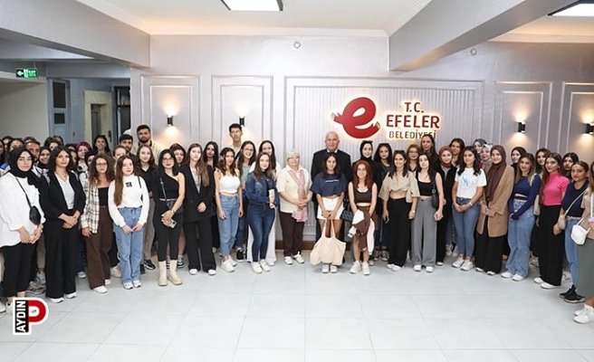 Adnan Menderes Üniversitesi (ADÜ) Sağlık Bilimleri Fakültesi Çocuk Gelişimi Bölümü’nde eğitim gören 80 kişilik öğrenci grubu “Toplumsal Sorumluluk ve Hizmet” dersleri kapsamında Dr. Öğretim Üyesi Ayten Can ile birlikte Efeler Belediye Başkanı Mehmet Fatih Atay’ı ziyaret etti. İlçeyi tanımak ve yerel yönetim hizmetleri hakkında bilgi edinmek amacıyla gerçekleşen buluşmada Başkan Atay, genç misafirlerini belediyenin meclis toplantı salonunda ağırladı. Öğrencilerle sohbet eden Başkan Atay, slayt gösterisi eşliğinde belediye çalışmaları hakkında bilgi verdi.