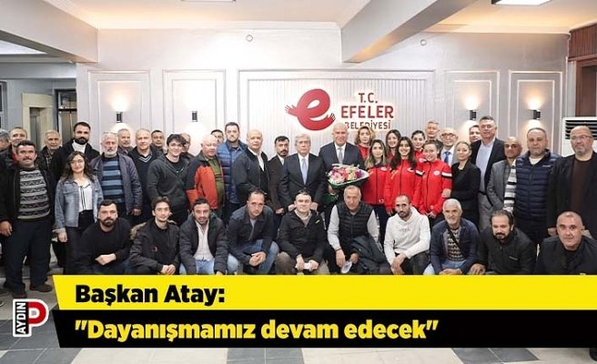 Aydın’ın Efeler ilçesinde faaliyet gösteren amatör spor kulüplerinin yöneticileri ve sporcuları Efeler Belediye Başkanı Mehmet Fatih Atay’a teşekkür ziyaretinde bulundu. Ziyarette konuşan Başkan Atay, “Dayanışmamız devam edecek” dedi.