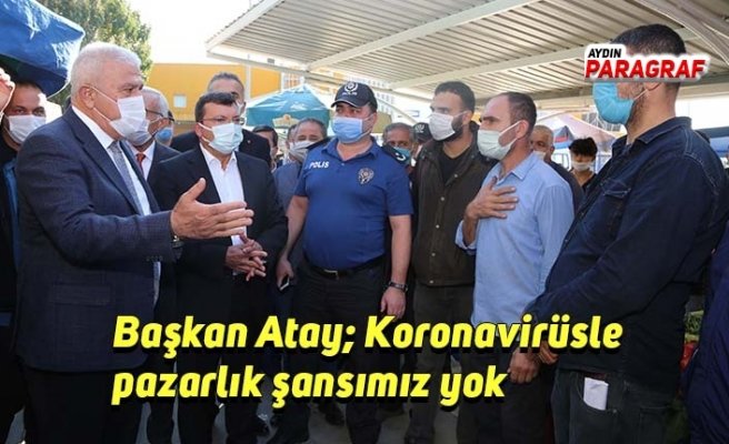 Esnaf ve vatandaşlarla sohbet eden Efeler Belediye Başkanı Atay, koronavirüs tedbirleri hakkında bilgi verdi. Efeler halkını tedbirlere uymaya bir kez daha davet ettiklerini söyleyen Atay, “Efeler Kaymakamımız Sayın Cemal Şahin ile birlikte Nevzat Biçer Üretici Pazarı’mıza ziyaret gerçekleştirdik. Pandemiyle mücadelede yerel yöneticiler olarak biz ve kurumlarımız uyum içinde ortak hareket ediyoruz. Mücadelemizin başarıyla sonuçlanması için esnafımızın, bizim ve tüm vatandaşlarımızın maske, sosyal mesafe ve temizlik kurallarına uygun olarak hareket etmemiz gerekiyor. Bu dönemde vaka sayılarında bildiğiniz gibi bir artış var. Rehavete kapılmadan ilk günkü tedbir anlayışımızı koruyarak tekrar vaka sayılarını minimuma düşürebileceğimize inanıyorum. Tüm vatandaşlarımızdan tedbirlere uyarak alışveriş yapmalarını rica ediyorum. Koronavirüsle pazarlık şansımız yok” diye konuştu.