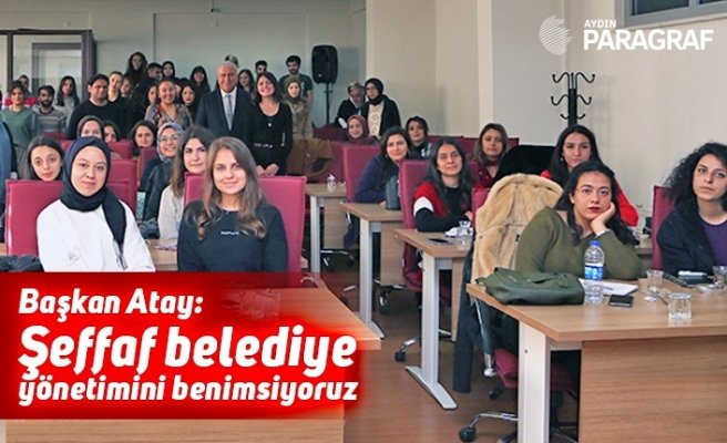 Efeler Belediye Başkanı M. Fatih Atay, Adnan Menderes Üniversitesi öğrencilerine “Topuma Hizmet Uygulamaları” dersi kapsamında belediye çalışmalarını, hedeflerini ve projelerini anlattı.  Atay, siyasetin topluma hizmet aracı olduğuna dikkat çekti, “Temel olarak şeffaf belediye yönetimi ve hesap verebilirlik anlayışı bizim için çok önemli” dedi.