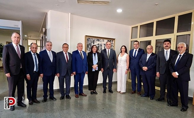 Aydın Ticaret Borsası Yönetim Kurulu Başkanı Fevzi Çondur ve yönetim kurulu üyeleri, Aydın Büyükşehir Belediye Başkanı Özlem Çerçioğlu’na nezaket ziyaretinde bulundu.