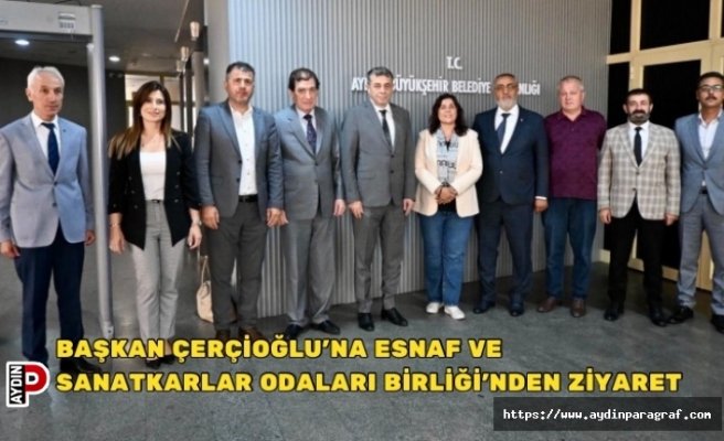 Aydın Büyükşehir Belediye Başkanı Özlem Çerçioğlu’na, Aydın Esnaf ve Sanatkarlar Odaları Birliği Başkanı Muhammet Ali Künkcü ve yönetim kurulu üyeleri nezaket ziyaretinde bulundu.