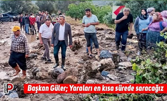Aydın’ın Köşk ilçesinde meydana gelen sel felaketi sonrasında bölgeye giden Belediye Başkanı Nuri Güler, incelemelerde bulunarak “Yaraları en kısa sürede saracağız” dedi.