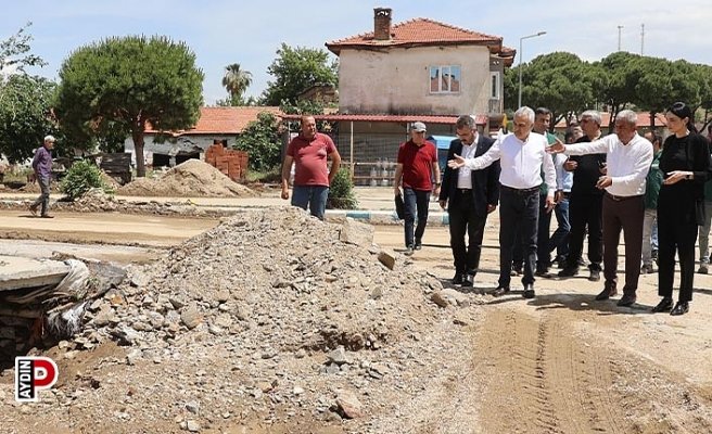 Aydın’ın Koçarlı ilçesinde sel felaketinin yaşandığı Güdüşlü, Yeniköy ve Bıyıklı Mahallelerinde selin izlerini silmek için çalışmalar devam ediyor.