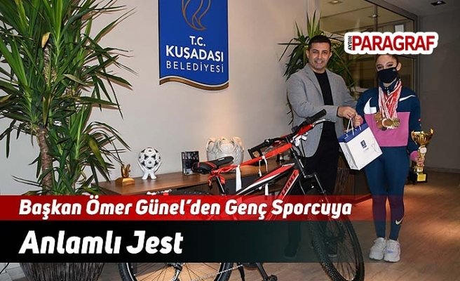 Kuşadası Belediye Başkanı Ömer Günel, “Uluslararası Ritmik Jimnastik KSIS CUP 2020” yarışmasında bronz kategorisinde dünya birincisi olan Kuşadalı Anzer Karya Karaçam’ı makamında ağırlayarak genç sporcuya bisiklet hediye etti.