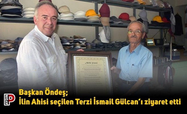 Germencik Belediye Başkanı Fuat Öndeş, Aydın Esnaf ve Sanatkarlar Odalar Birliği tarafından “ilin ahisi” seçilen terzi İsmail Gülcan’ı ziyaret ederek hediye verdi. Ahilik kültürünün yüz yıllardır süre gelen bir sistem olduğunu ifade eden Başkan Öndeş, Gülcan’a da sağlıklı ömür diledi.