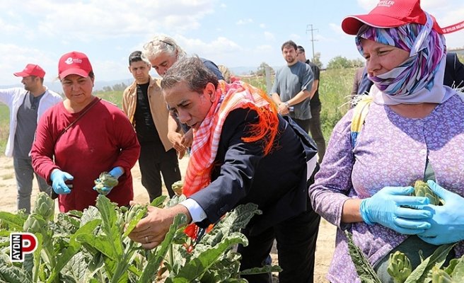 Efeler Belediye Başkanı Anıl Yetişkin, belediyeye ait tarım arazilerinde yetiştirilen enginarların hasadına katıldı.
