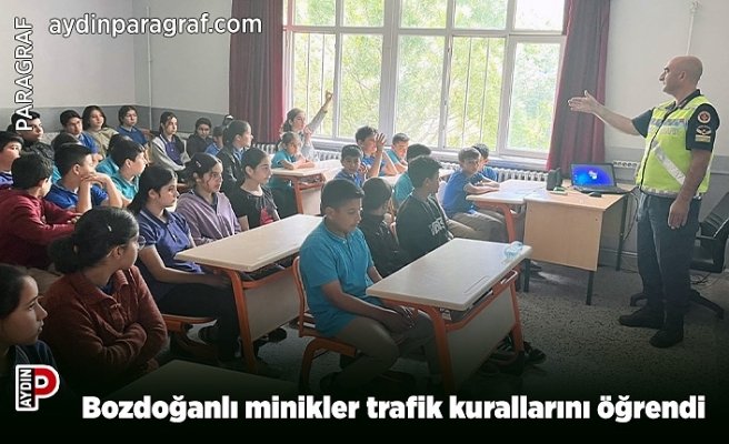 Aydın İl Jandarma Komutanlığı koordinesinde il genelinde ilkokul öğrencilerine yönelik gerçekleştirilen trafik eğitimleri aralıksız devam ediyor. Bu çerçevede Bozdoğan ilçesinde de jandarma trafik ekiplerince ilkokul öğrencilerine trafik eğitimi verildi. Haydere İlkokulu ve Haydere Ortaokulu’nu ziyaret eden ekiplere, öğrencilere trafik kurallarını anlattı. “Trafik Kurallarını Öğreniyoruz, Trafikte Güvende Kalıyoruz” mottosuyla öğrencilere önce yaya eğitimi, genel trafik kuralları, okul servislerinde inme ve binme kuralları, bisiklet binme kuralları, oyun oynayacak ve oynanmayacak yerler, araçlarda emniyet kemeri kullanmanın önemi, trafikte görünürlük ile yaya ve okul geçitlerinde hareket tarzı konularında eğitim ve seminer verildi.