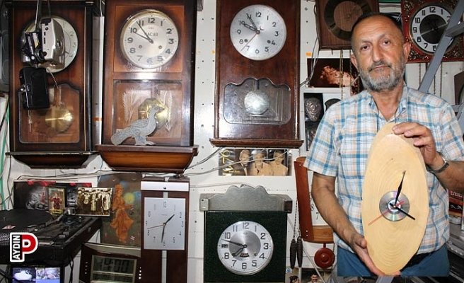 Aydın’da antika dükkanı işleten Mustafa Demirel’in (59), çeşitli ürünleri bir araya getirerek yaptığı ilginç saatler görenlerin ilgi odağı olurken, ürettiği saatlerin de başka yerde benzeri bulunmuyor.