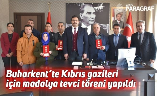 Buharkent Kaymakamlığı’nda düzenlenen tevcih törenine Buharkent Kaymakamı Kemal Ülkü ve Nazilli Aile Çalışma ve Sosyal Hizmetler Müdürü Abdülgani Kavak ve ilçede ikamet eden gaziler ve yakınları katıldı. İlçe Kaymakamı Kemal Ülkü tarafından, Kıbrıs gazileri Veysel Beşinci adına eşi Nazik Beşinci’ye, Hayrettin Küçük’e ve Süleyman Karaçam’a kaymakamlık makamında madalyaları tevcih edildi.