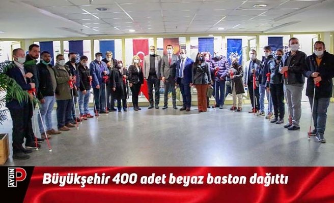 Aydın Büyükşehir Belediyesi 3 Aralık Dünya Engelliler Günü’nde Aydın genelindeki görme engelli vatandaşlara en büyük ihtiyaçlarından olan 400 adet beyaz baston dağıttı. Büyükşehir Belediyesi binasında yapılan törene katılan Aydın Büyükşehir Belediye Başkanvekili Barış Altıntaş, her zaman engelli vatandaşların yanlarında olmaya devam edeceklerini söyledi.