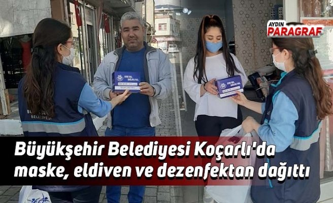 Aydın Büyükşehir Belediyesi, koronavirüs salgınına karşı aldığı tedbirleri durmaksızın sürdürüyor. Aydın’ın 17 ilçesinde maske, eldiven ve dezenfektan dağıtımına devam eden Büyükşehir Belediyesi, kepenklerini açan Koçarlı esnafını da unutmadı.