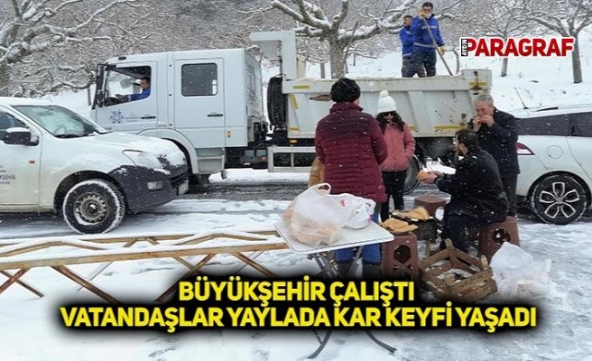 BÜYÜKŞEHİR ÇALIŞTI VATANDAŞLAR YAYLADA KAR KEYFİ YAŞADI