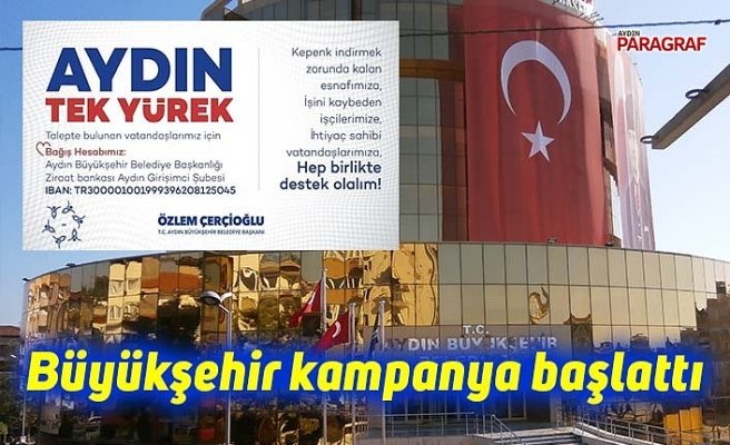Aydın Büyükşehir Belediyesi tarafından başlatılan kampanyada ‘Aydın tek yürek’ başlığı kullanıldı. Kampanya kapsamında koronavirüs nedeniyle kepenk indirmek zorunda kalan esnaf, işini kaybeden işçi ve ihtiyaç sahibi vatandaşların ihtiyaçlarının karşılanması hedefleniyor.