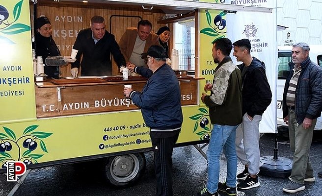 Büyükşehir Kuşadalılara soğuk havada iç ısıtan ikram