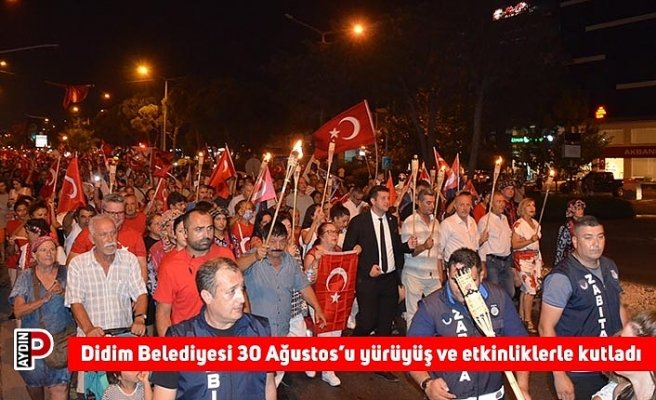 Didim’de 30 Ağustos Zafer Bayramı dolayısıyla Fener alayı düzenlendi. Didim Belediyesi önünden başlayan yürüyüş ve fener alayına Didim Belediye Başkanı A. Deniz Atabay, CHP İlçe Başkanı Nurettin Koçak, İyi Parti Didim İlçe Başkanı Vefa Berk Tezsezener, Belediye başkan yardımcıları Yusuf Deveci ve Zeynel Şener ile bazı meclis üyeleri ile çok sayıda vatandaş katıldı.