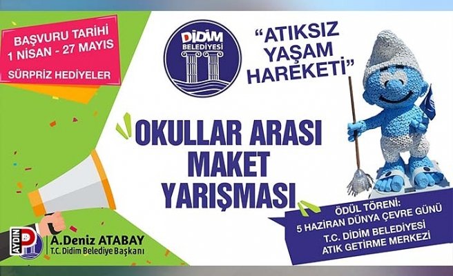 İlçe genelinde geri dönüşüm hareketi başlatan Didim Belediyesi, ilk ve ortaokul öğrencilerine yönelik Okullar Arası Maket Yarışması düzenliyor. Yarışmaya katılan öğrencileri birçok sürpriz ödül bekliyor.
