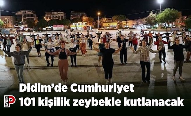 29 Ekim Cumhuriyet Bayramı’nın 101. yılı Didim’de halk oyunu şöleniyle kutlanacak. Halk oyunları ekibi sorumlusu Sinan Çetin’in öncülüğünde 101 kişiyle zeybek gösterisinin hazırlıklarına başlandı. Didim kent meydanında bir araya gelen yediden yetmişe 101 kişi zeybek oynadı. “Zeybek bilmeyen kalmasın” sloganıyla gerçekleştirilen kursa katılan kursiyerler, Ege kültürünün yapı taşlarından zeybek oyununu eğitmen Sinan Çetin’den öğrendi. Senkronize şekilde oyunun oynanması için Çetin tarafından kursiyerlere eğitimler verildi. Cumhuriyetin 101. yılında 101 kişiyle sergilenecek zeybek oyunun hazırlıklarının Ekim ayı içerisinde devam edeceği öğrenildi.