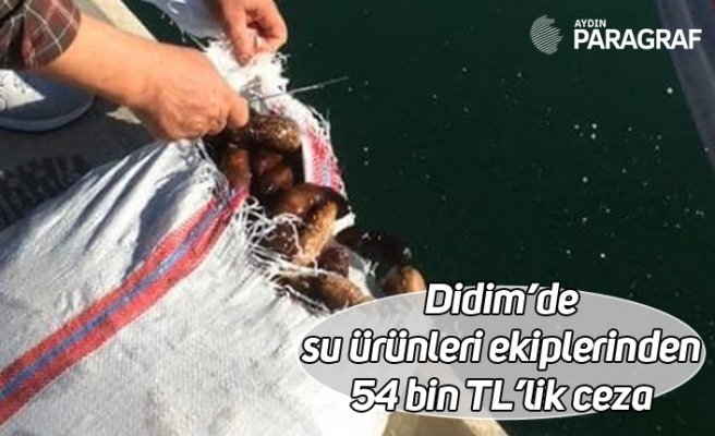 Didim’de değişik yer ve zamanlarda denizde ve karada denetimlere çıkan Didim İlçe Tarım ve Orman Müdürlüğü Su Ürünleri Kontrol ekipleri ceza yağdırdı. Ekiplerce yapılan denetimlerde  “Ruhsatsız tekne ile ticari amaçlı su ürünleri avcılığı yapmak” , “Trol avcılığına ilişkin ihlal”, “Ahtapot avcılığına ilişkin ihlal” , “Deniz patlıcanı avcılığına ilişkin ihlal” ve “Amatör avcılık kuralları ihlali” gerekçeleriyle toplam 54 bin 685 TL idari para cezası kesti Söz konusu denetimlerde yaklaşık 300 kg su ürünleri ele geçirilirken, avcılıkta kullanılan av araç ve gereçlere ise el konuldu.