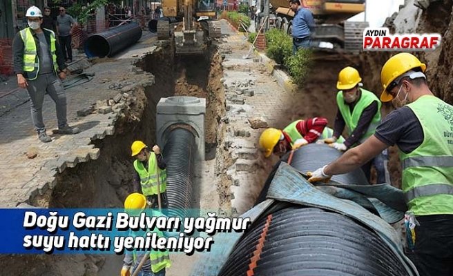 Aydın Büyükşehir Belediyesi ekipleri, Efeler Doğu Gazi Bulvarı’nda yağmur suyu hat çalışması yapıyor.