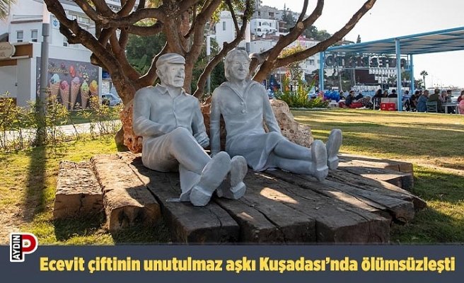 5 Kasım 2006’da hayatını kaybeden eski Başbakan Bülent Ecevit’in 16’ncı ölüm yıl dönümünde Kuşadası Belediyesi, Başkan Ömer Günel’in talimatıyla Ecevit çiftinin unutulmaz fotoğraf karelerinden birini heykel haline getirerek ölümsüzleştirdi. Gazeteci Kadir Can tarafından bir seçim gezisi sırasında çiftin ağaç altında dinlenirken çekilmiş fotoğrafından yola çıkan heykeltıraş Volkan Doğan’ın yaptığı 2 metre uzunluğundaki heykel, Güvercinada Caddesi’nde bulunan Bülent Ecevit Parkı’na yerleştirildi. Genç yaşlarında tanışarak tüm ömürlerini birlikte geçiren Ecevit çiftinin unutulmaz aşklarının hatırası artık Bülent Ecevit’in adını taşıyan parkta yaşayacak.