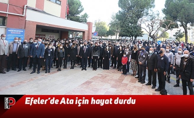 Efeler Belediyesi çalışanları, Gazi Mustafa Kemal Atatürk’ü vefatının 83’üncü yıl dönümünde Efeler Belediye hizmet binası önünde düzenlenen törenle andı.