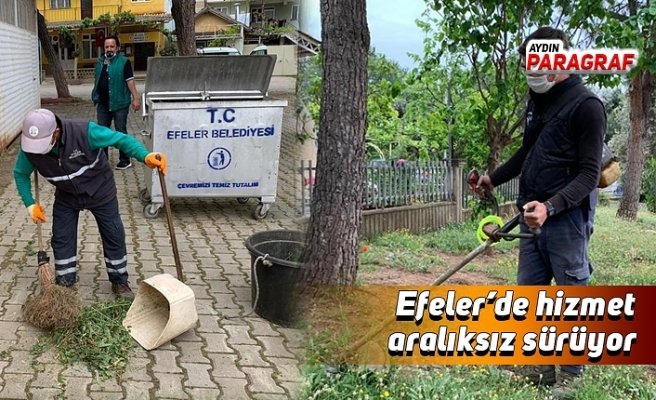 Efeler Belediye Başkanı M. Fatih Atay’ın talimatıyla bir yandan koronavirüs salgınının kentte yayılmasını engellemek için hijyen çalışmalarına devam eden Efeler Belediyesi çalışanları, bir yandan da rutin hizmetlerini sürdürüyor. Efeler Belediyesi Park ve Bahçeler Müdürlüğü ekipleri, sokağa çıkma yasağı ilan edilmesinin ardından boş kalan ilçe sokaklarında ve parklarda çim biçme, bakım ve yeşil alan düzenlemesi çalışmaları gerçekleştirdi. Çalışmaların, ilçenin hem kırsal hem de merkez mahallelerinde eş zamanlı olarak sürdüğü bildirildi.