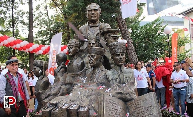 Efeler Belediye Başkanı Mehmet Fatih Atay’ın konuşmasının ardından 100. Yıl Anıt Heykeli’nin açılışı gerçekleştirildi. Milletvekilleri, meclis üyeleri, muhtarlar, siyasi partilerin ve sivil toplum kuruluşu temsilcilerinin yanı sıra Efeler halkıyla beraber kurdeleyi kesen Başkan Atay, anıtın üzerindeki örtüyü indirerek vatandaşların beğenisine sundu. Vatandaşların yükselen alkışları ve marşlarla tören sona erdi.