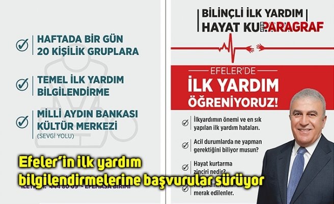 Efeler Belediyesi’nin ilçede yaşayan vatandaşlara yönelik başlattığı ücretsiz temel ilk yardım bilgilendirmeleri için başvurular devam ediyor.