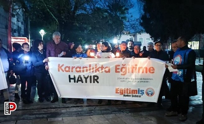 Aydın Manşet Gazetesi’nden Melek Fırat’ın haberine göre; Eğitim – İş Aydın Şubesi “Karanlıkta eğitime hayır” dedi. Eğitimciler Aydın’ın Efeler ilçesi Gençlik Caddesindeki bulunan Gazipaşa Ortaokulu önünde gerçekleşen basın açıklaması ile Milli Eğitim Bakanlığına seslendi. Pek çok STK’nın destek verdiği açıklamaya katılanlar, ellerinde fenerlerle, yaz saati uygulaması nedeniyle çocukların karanlıkta okula gitmek zorunda kaldığına dikkat çekti.
