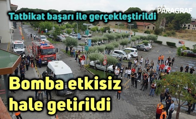 Aydın Emniyet Müdürlüğü, AFAD ve Aydın Büyükşehir Belediyesi İtfaiye ekiplerinin de katıldığı tatbikat, senaryo gereği Alışveriş Merkezi’ne bir şahıs tarafından bırakılan içerisinde bomba bulunan poşetin güvenlik görevlileri tarafından fark edilmesi ile başladı. Güvenlik kameralarını inceleyen görevliler poşeti bırakan şahsı yakalayarak gözaltına aldı. Olay yerine gelen emniyet güçleri şahsı teslim aldı. Yapılan ihbar üzerine alışveriş merkezine 112 Acil Sağlık, İtfaiye ve AFAD ekipleri sevk edildi. Bomba imha uzmanı poşet içerisindeki bombayı fünye ile patlatarak etkisiz hale getirdi. Yaşanan arbede esnasında yaralanan iki kişi ekipler tarafından ambulansa taşındı. Patlama sonrası çıkan yangın itfaiye ekipleri tarafından söndürüldü. Alışveriş merkezindeki güvenlik önlemleri kapsamında dışarıya çıkartılan personel tehlikenin geçmesinin ardından içeriye alındı.